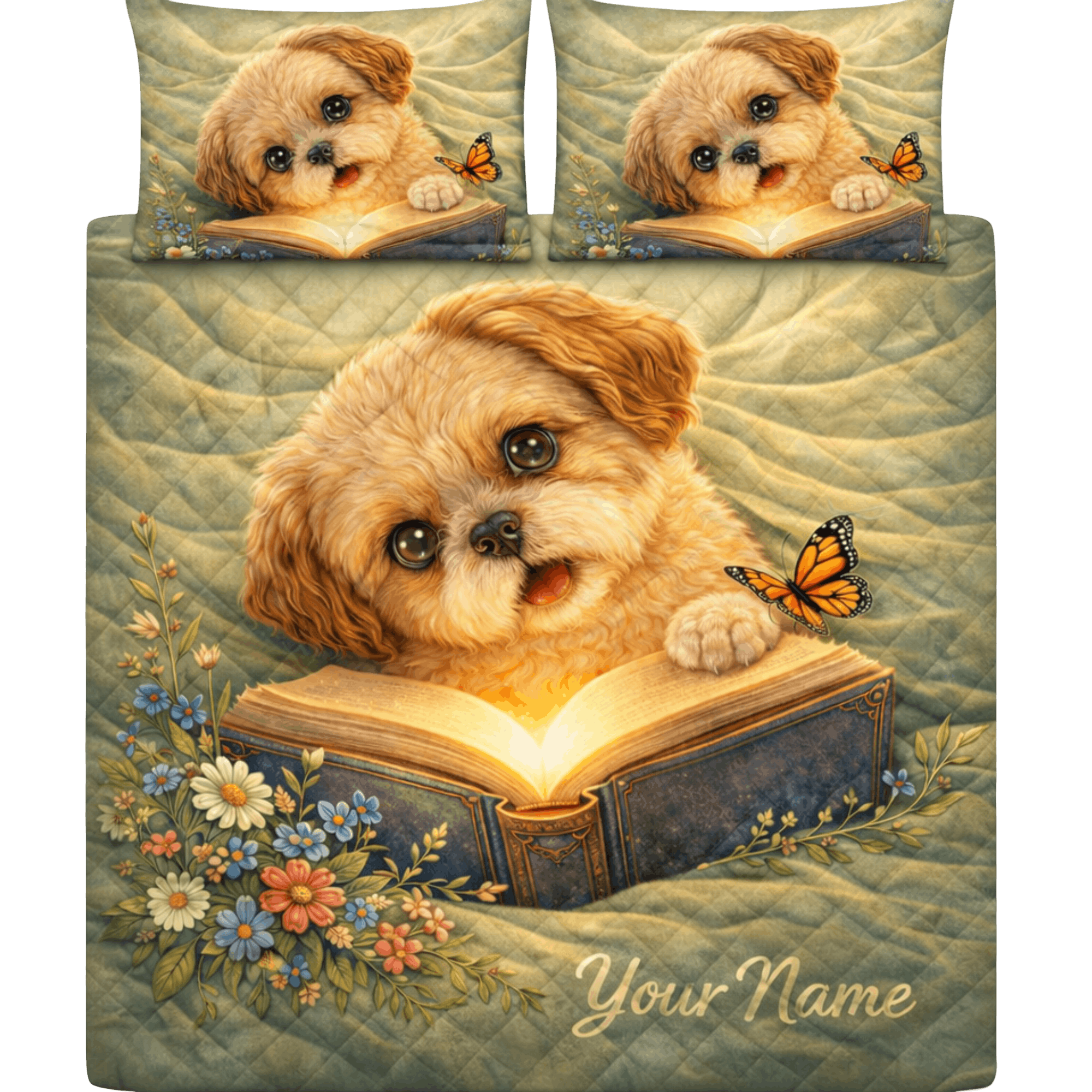 Lotusprint LLC 2D Print Personalized Dog Floral Book Bedding Set (78x88 ...