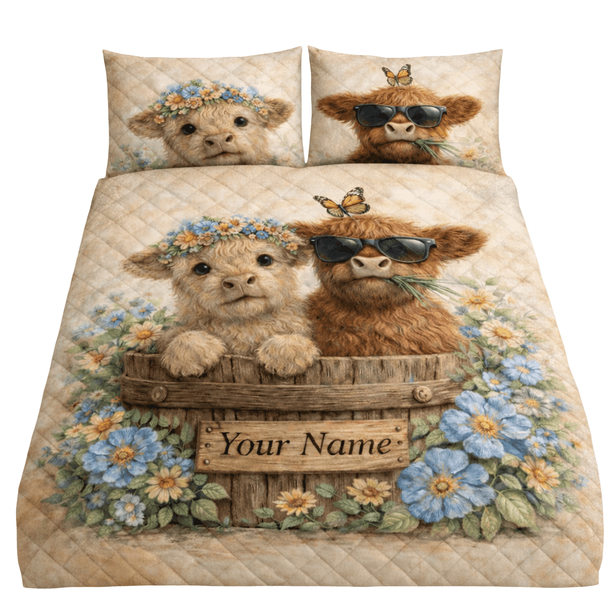 Lotusprint LLC 2D Print Personalized Highland Cow Quilt Bedding Set ...