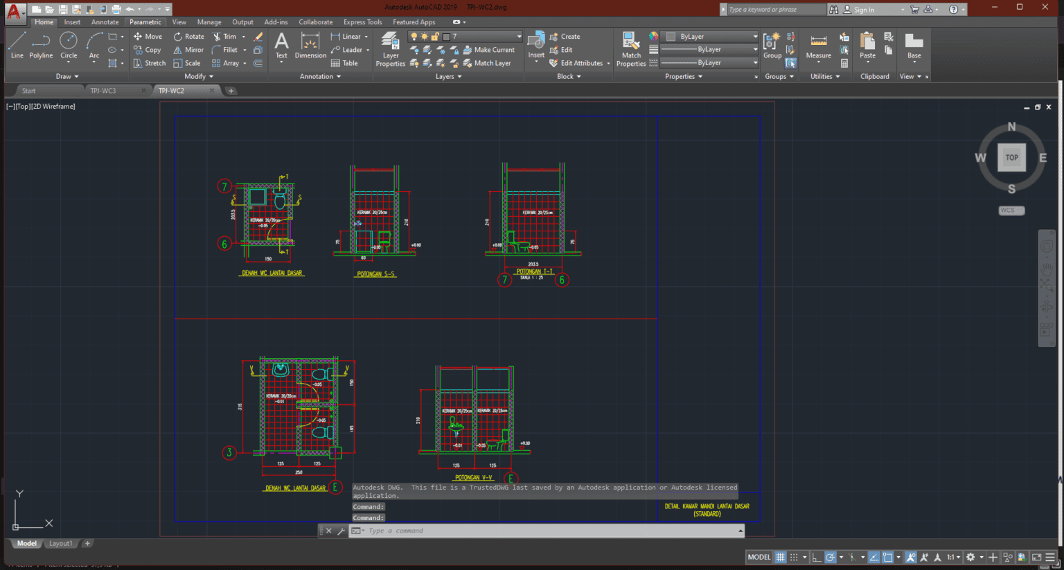 Denah dan Gambar CAD Arsitek Wisma 3 Lantai_TPJ-WC2 | Sipilpedia
