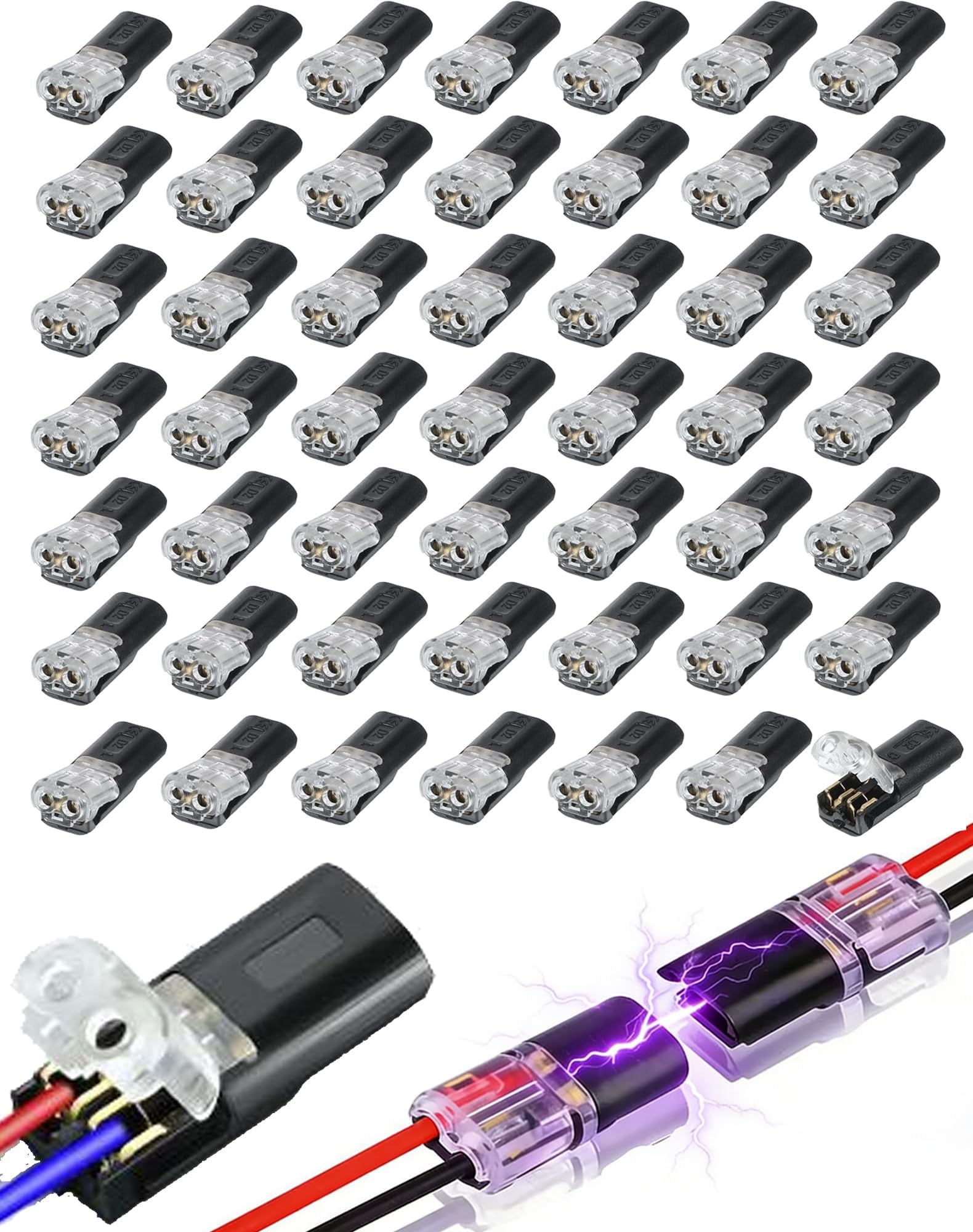 50Pcs Double-Wire Plug-in Connector, Pluggable 2 Pin 2 Way LED Wire ...