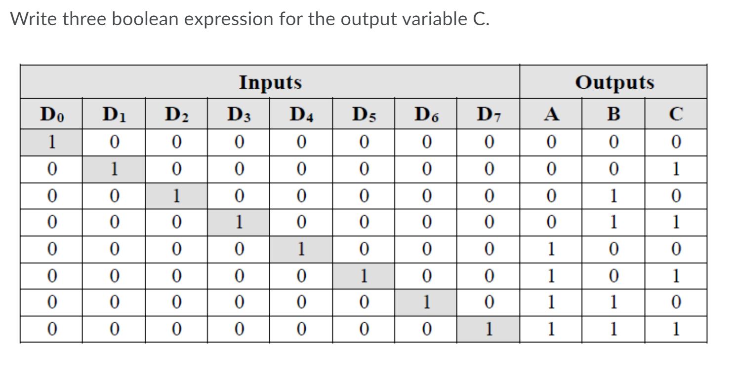 Solved Write three boolean expression for the output | Chegg.com