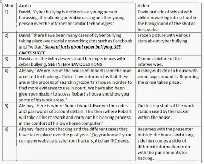 Writing out our 3 column script- Faye