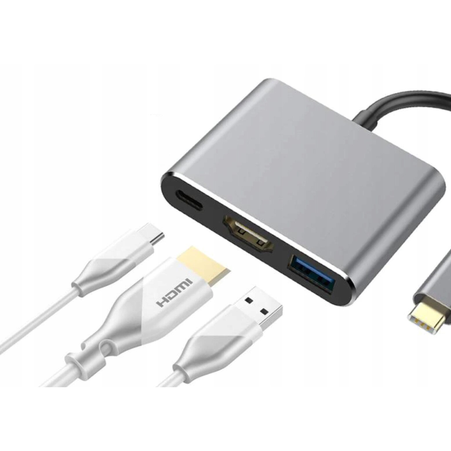 Adaptor 3 in 1, HDMI/USB 3.0/USB-C, Full HD 60 fps, Argintiu - eMAG.ro