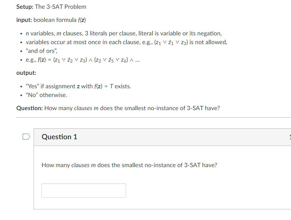Solved Setup: The 3-SAT Problem input: boolean formula f(z) | Chegg.com