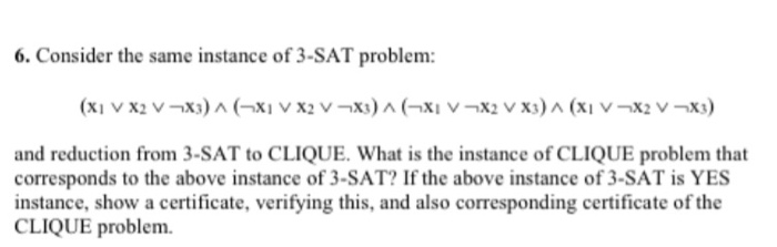 Solved 6. Consider the same instance of 3-SAT problem: (xi V | Chegg.com