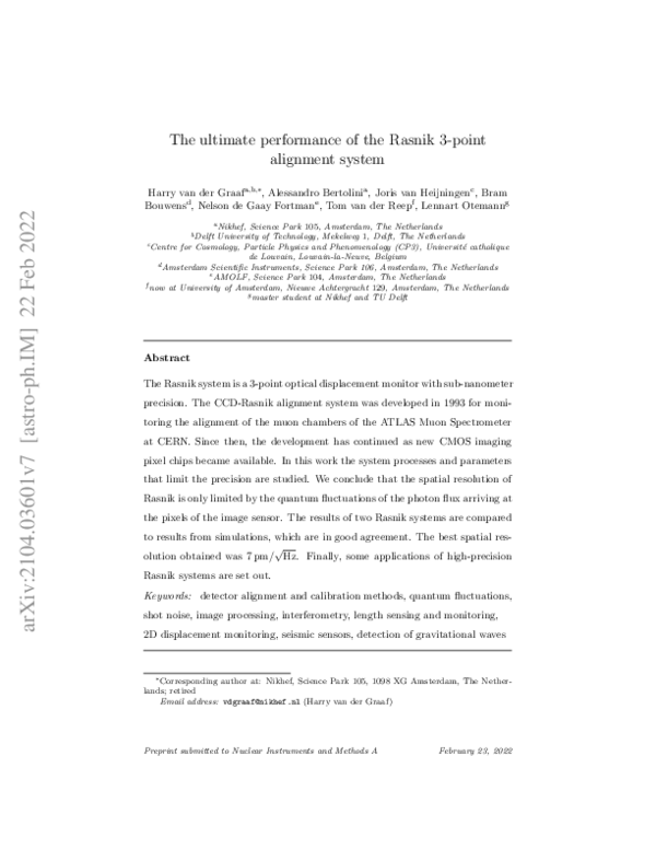 (PDF) The ultimate performance of the Rasnik 3-point alignment system