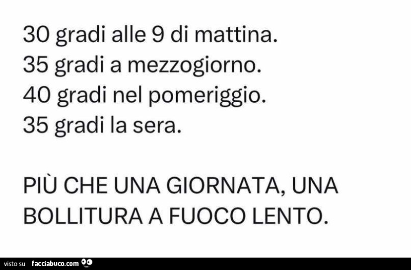 30 gradi alle 9 di mattina. 35 gradi a mezzogiorno. 40 gradi nel ...