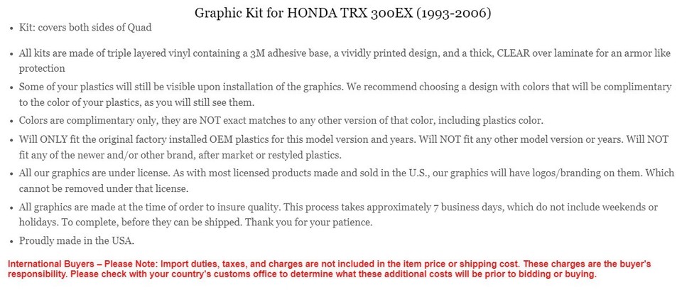 Honda Trx 300ex 1993 to 2006 Graphics Kit Fits Trx 300ex Stickers Decal ...