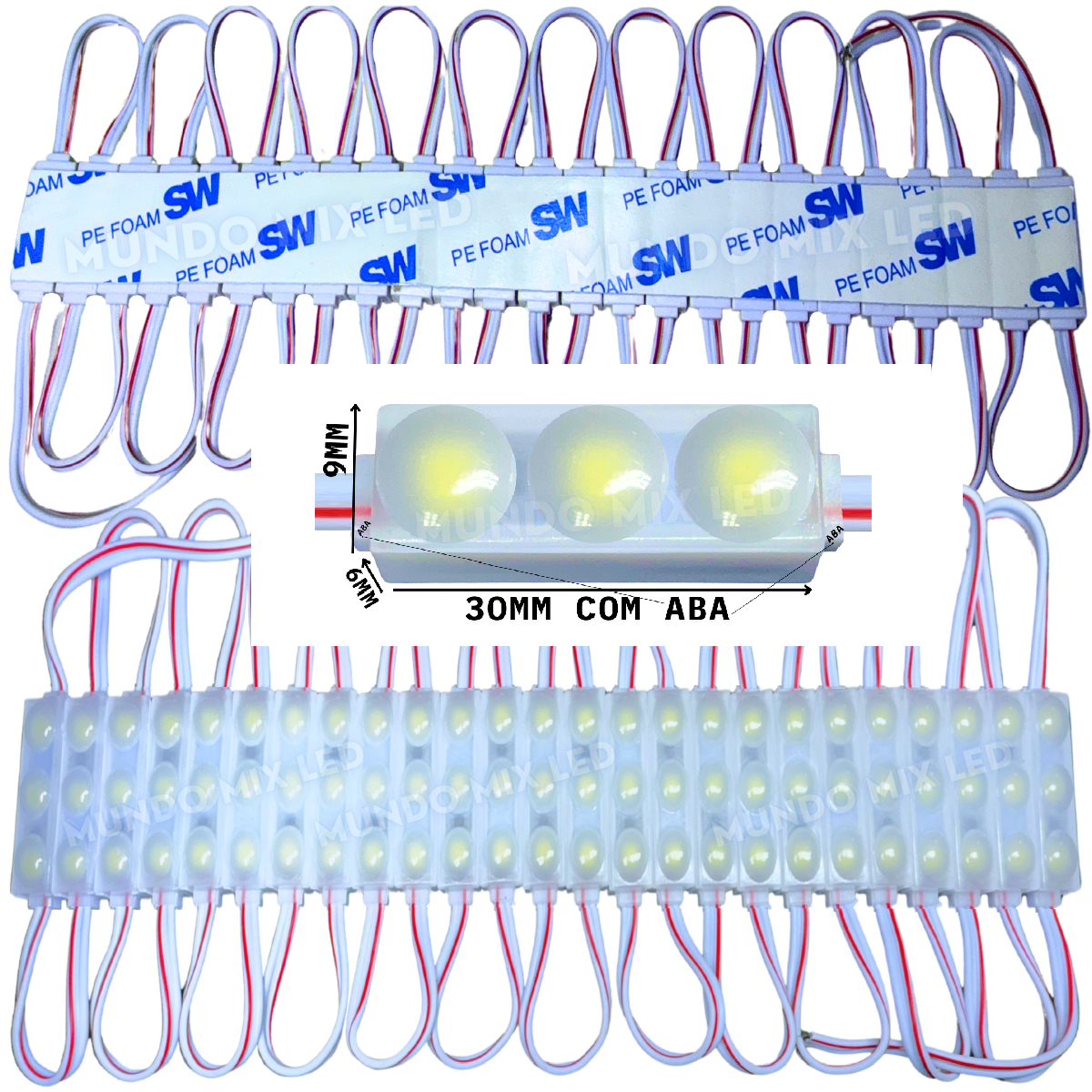 Micro Módulo LED 2835 30mm 0,6W 3-LEDs Branco Puro 6000K 12V IP67 Inje ...