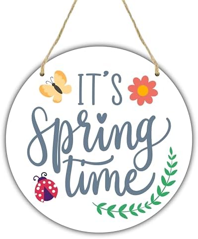 8 Round Wooden Hanging Door Sign - It's Spring Time - Minimal Spring ...