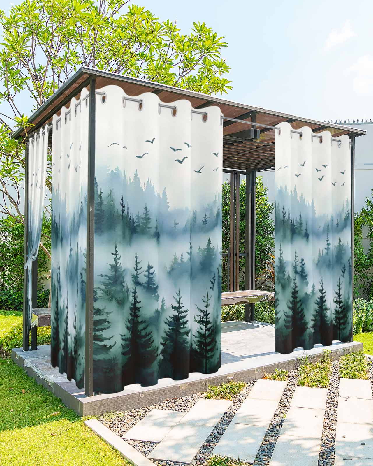 Fog Forest Outdoor Curtains for Patio, Mystery Abstract Spring Dark ...