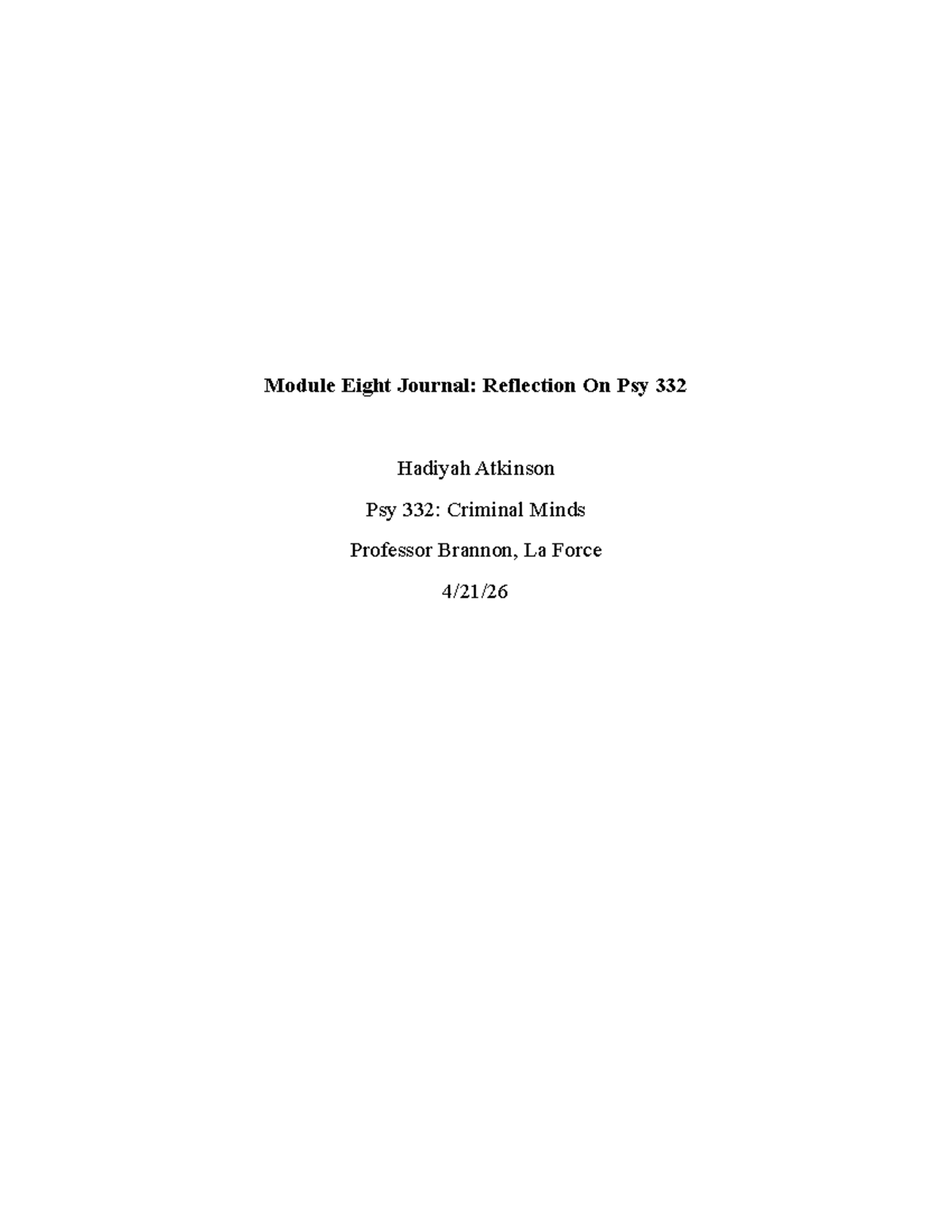 Psy 332: Module Eight Reflection on Criminal Minds - Studocu