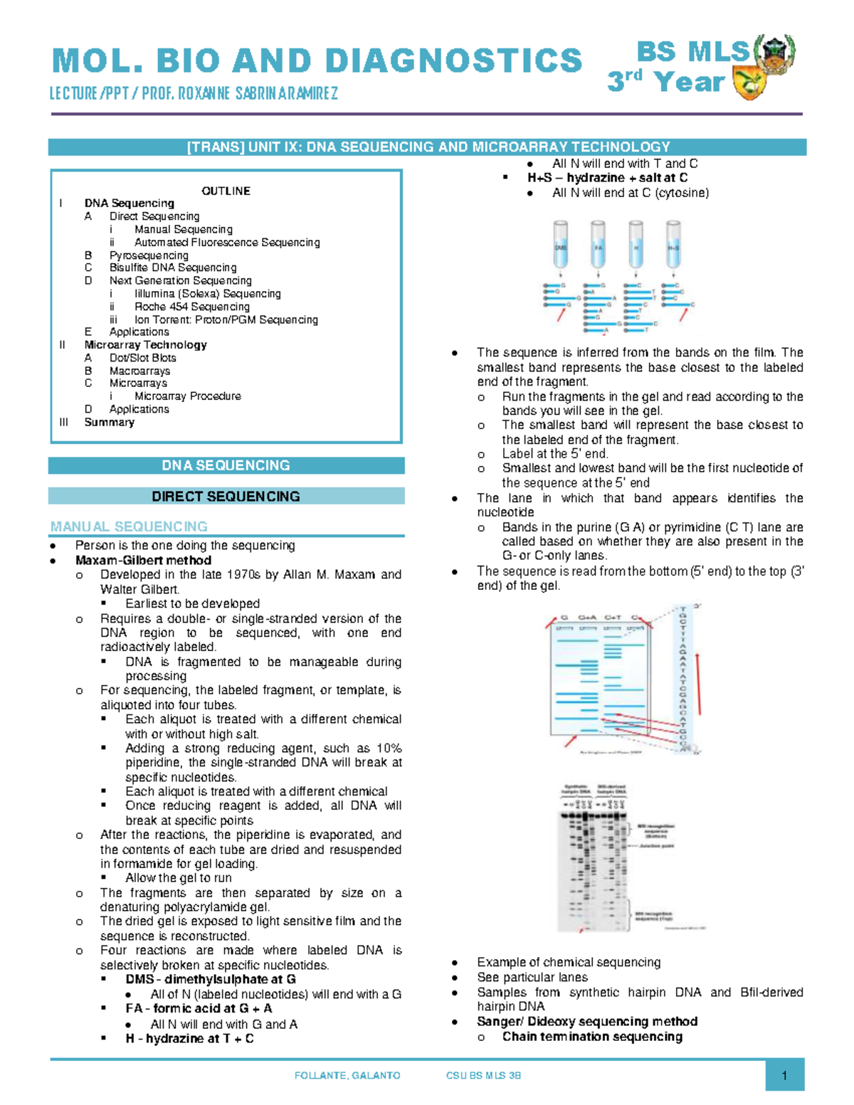 CSU BS MLS 3B: DNA Sequencing & Microarray Technology Notes - Studocu