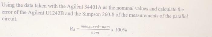 Solved Using the data taken with the Agilent 34401 A as the | Chegg.com