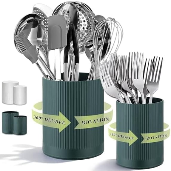 360° Rotating Utensil Holder, 6.3''+4.7'' Plastic Kitchen Utensil ...