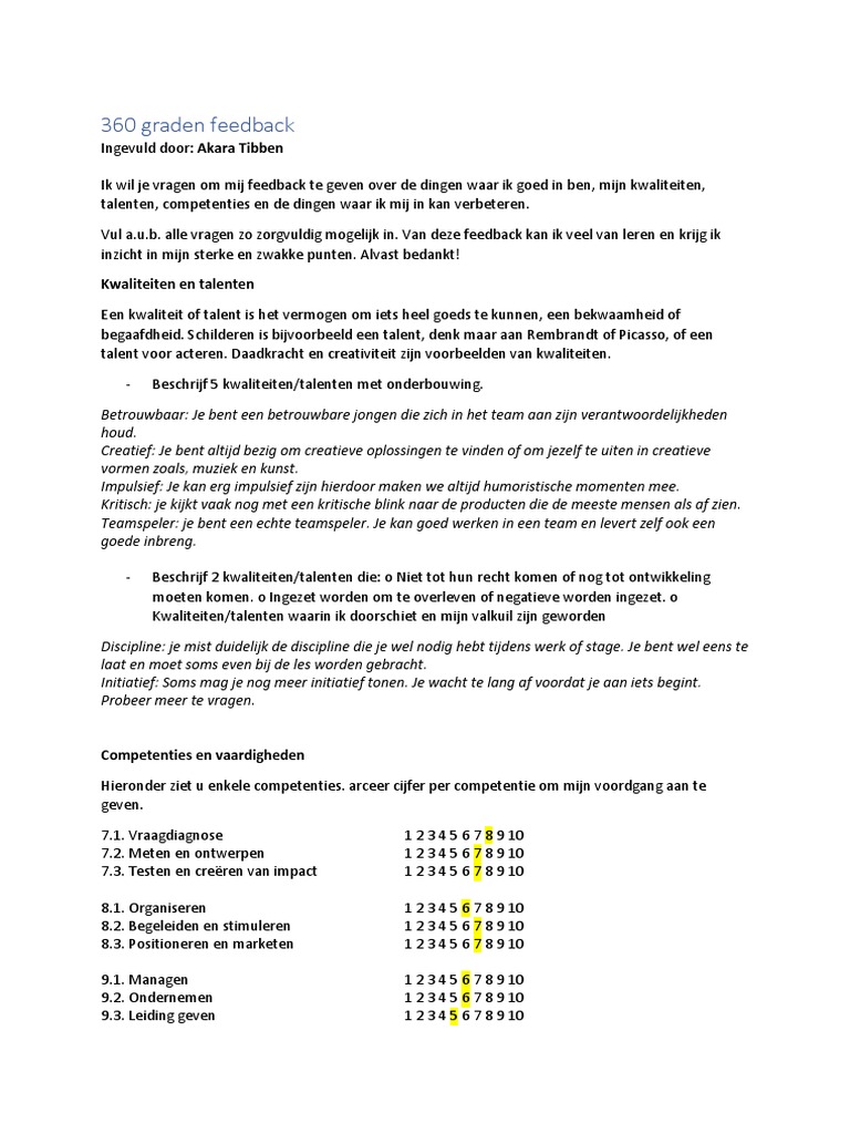 Formulier 360 Graden feedback(2) - 360 Graden feedback Graden is een ...