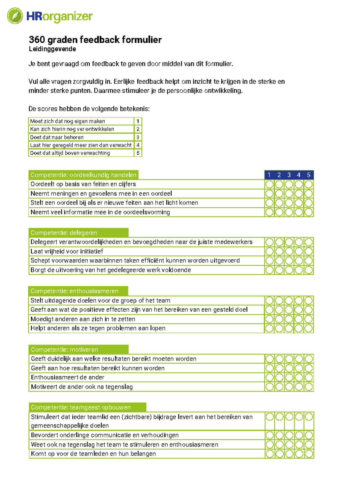 360 Graden Feedback Formulier voor Leidinggevenden - Studeersnel