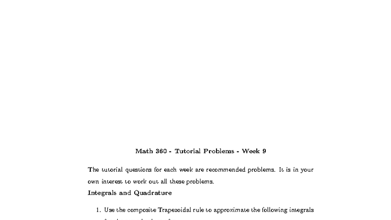 Math 360 Tutorial Problems: Week 9 Integrals & Quadrature Techniques ...