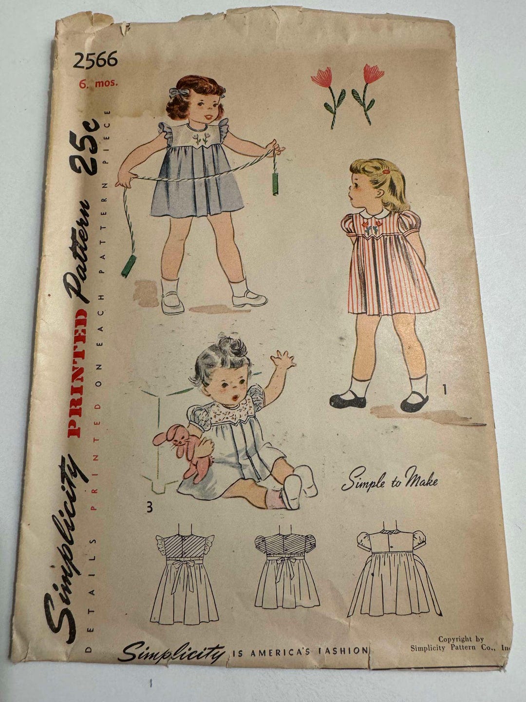 Simplicity Pattern # 2566 Dated 1946 Girl's Embroidered Dress Size 6 ...