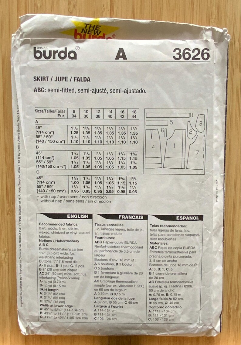 1990s Skirt Sewing Pattern – Burda 3626 – Sizes 8–18 – Vintage Easy ...