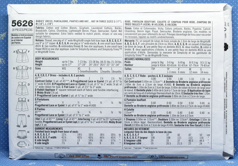 Simplicity Sewing Pattern 5626 Babies' Dress Pantaloons | Etsy