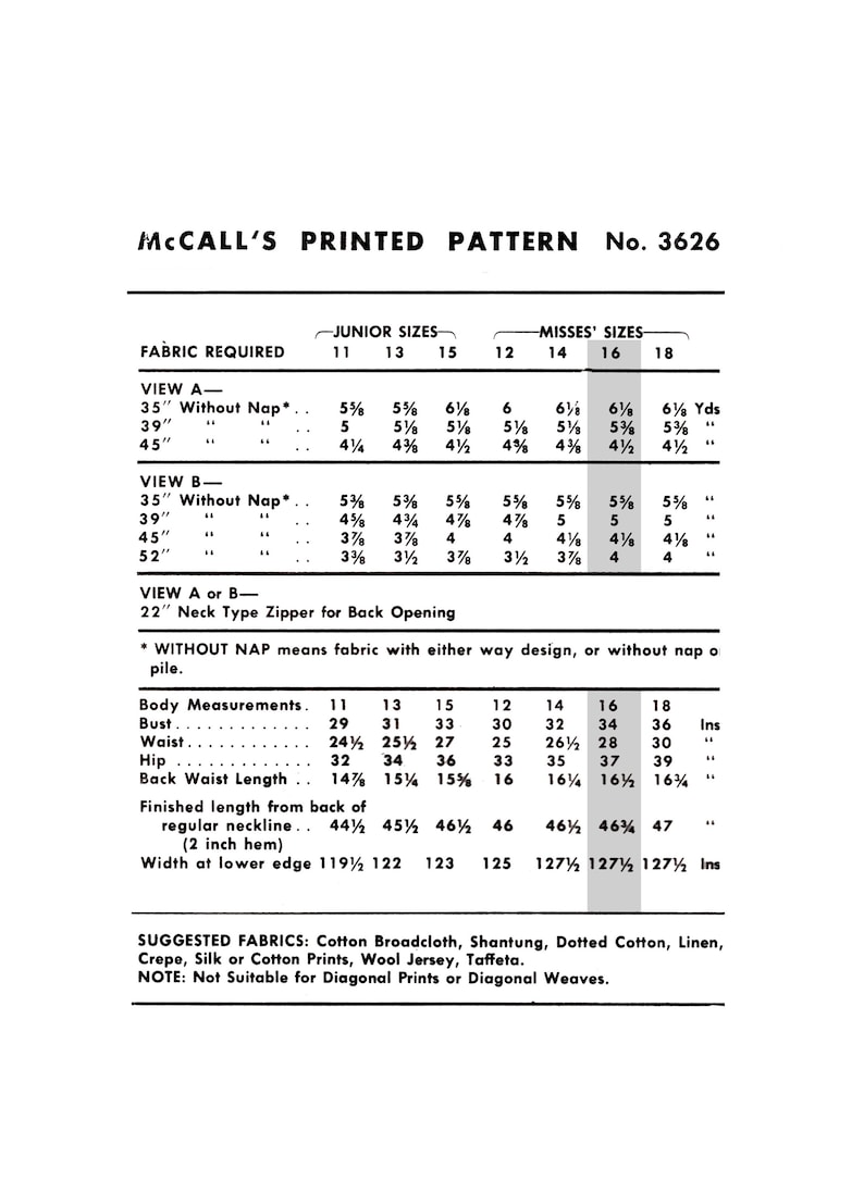 McCall's 3626 | Vintage Sewing Patterns | Fandom