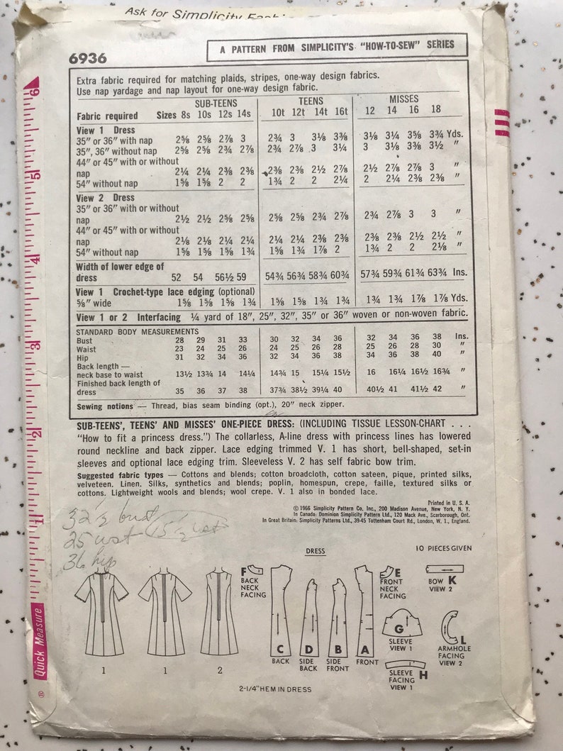 Simplicity 6936 Pattern UNCUT 1960s How to Sew Easy Princess Seamed A ...