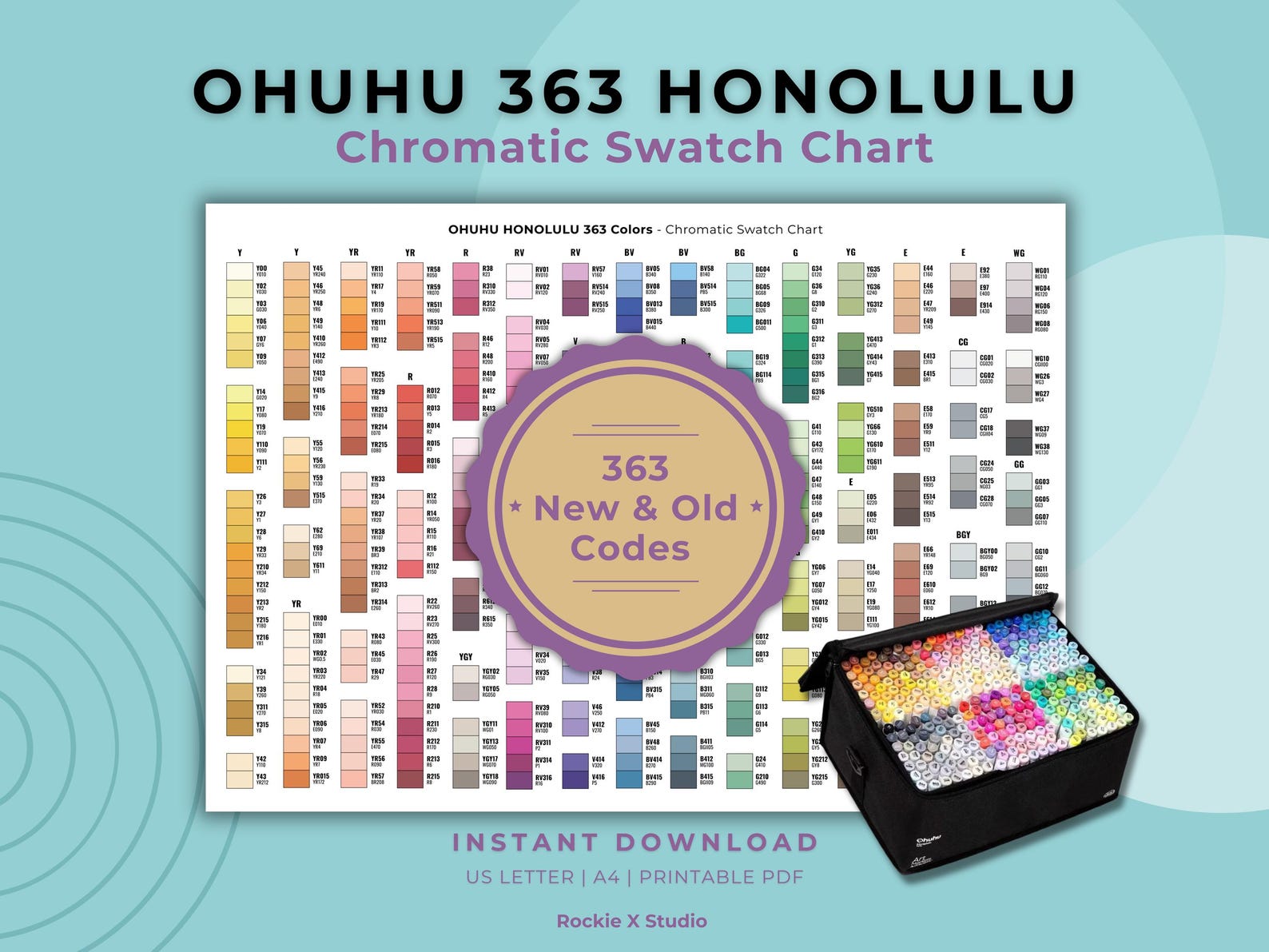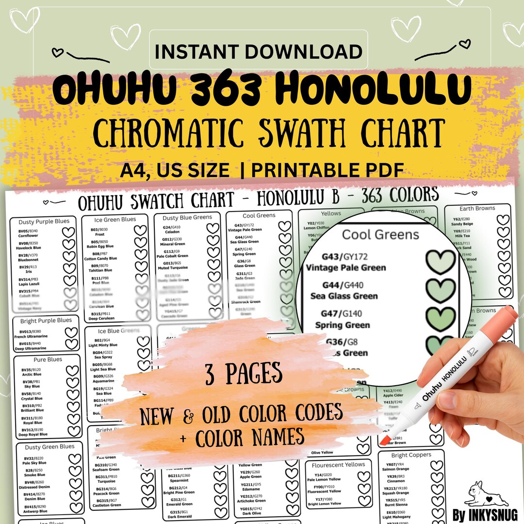 Ohuhu Honolulu 363 Color Swatch Chart: New/old Codes (digital Download ...
