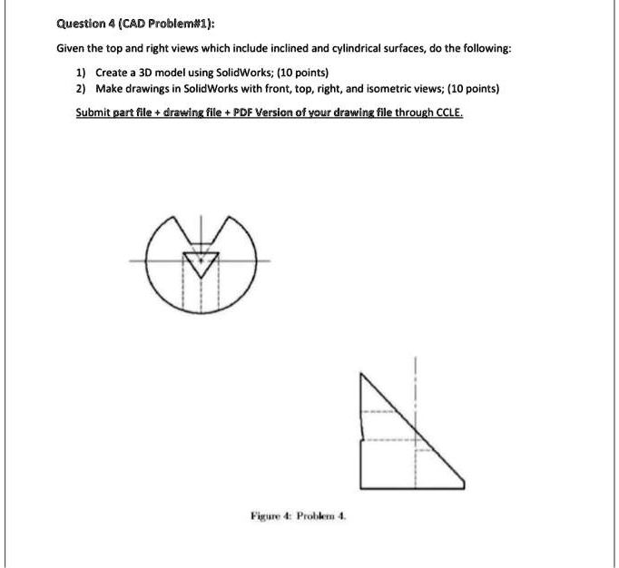 Question 4 (CAD Problem#1): Given the top and right views...