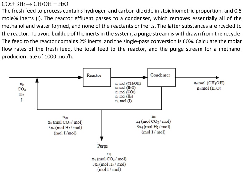 Solved CO2+3H2→CH3OH+H2OThe fresh feed to process contains | Chegg.com