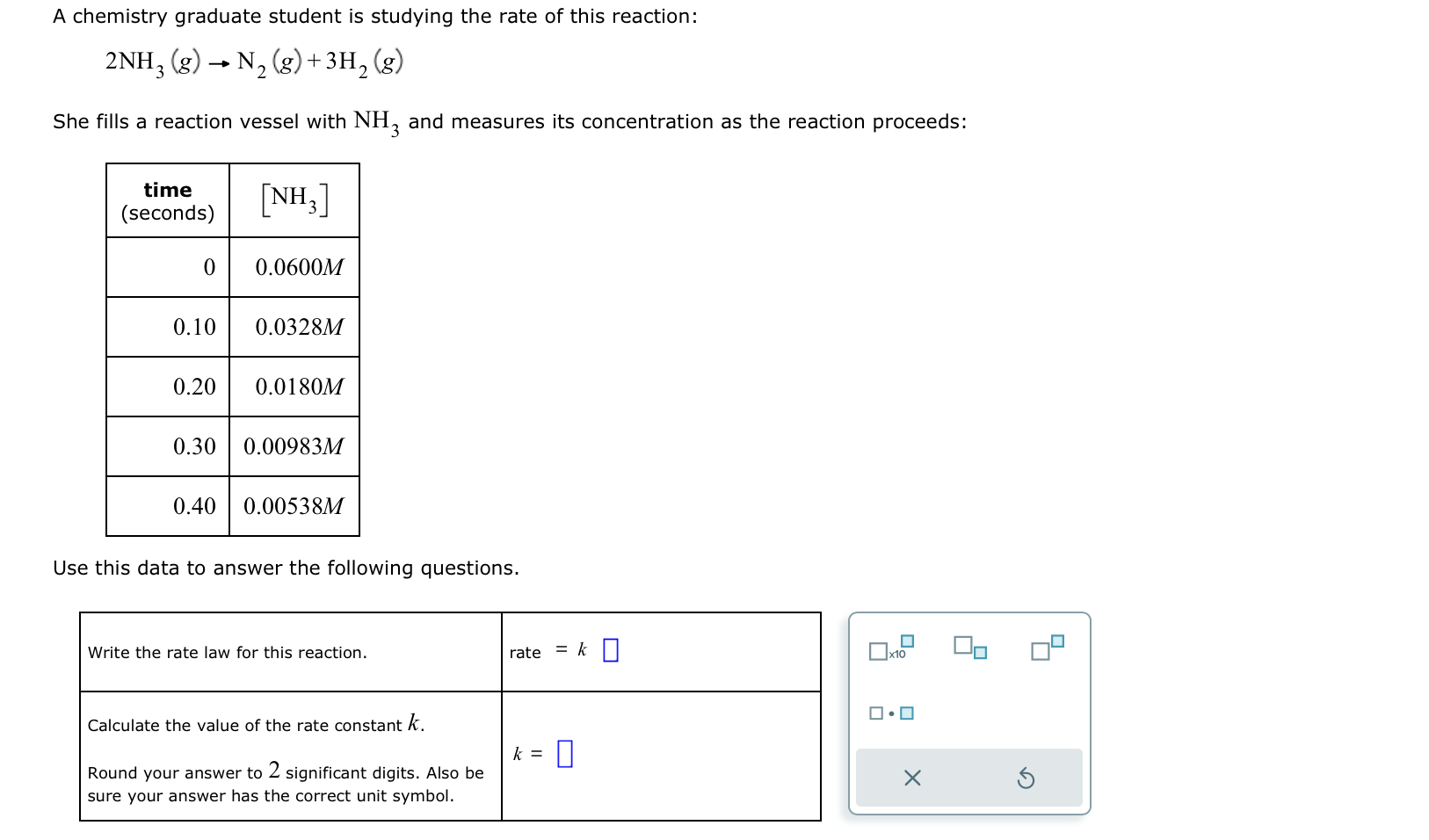 Solved 1. for the chemical reaction N2+3H2=2NH3 after 10 s | Chegg.com