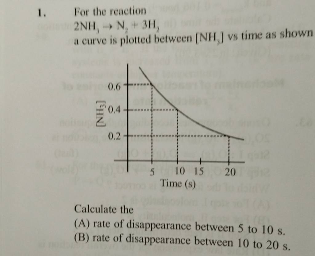 1. For the reaction 2NH3 →N2 +3H2 a curve is plotted between [NH3 ] vs t..