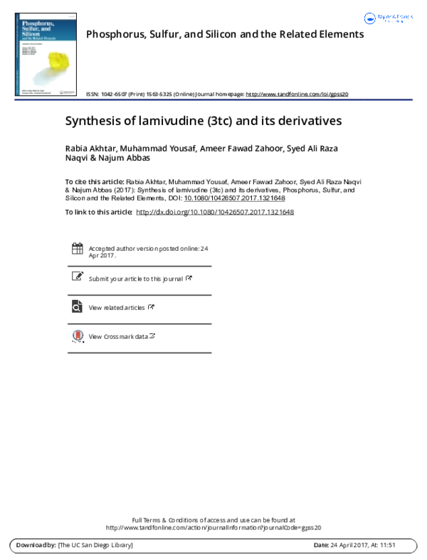 Synthesis of lamivudine (3TC) and its derivatives: Phosphorus, Sulfur ...