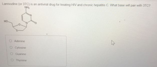 Solved Lamivudine (or 3TC) is an antiviral drug for treating | Chegg.com