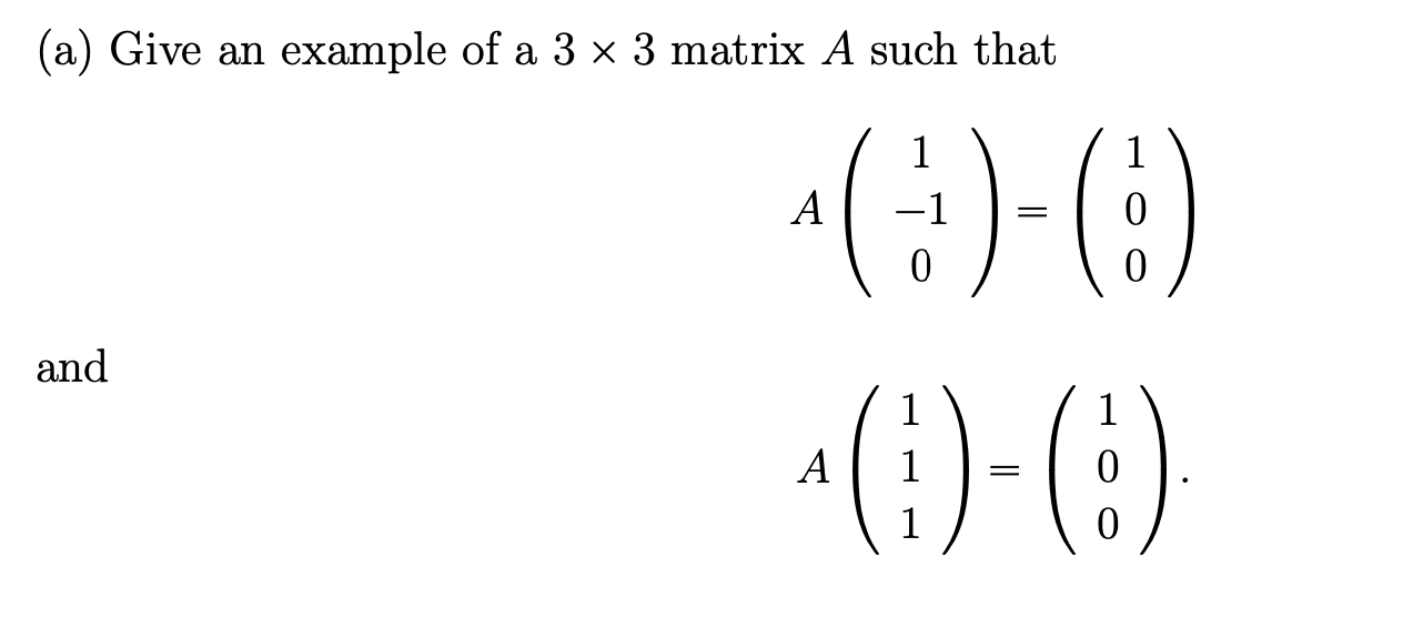 Solved (a) Give an example of a 3×3 matrix A such that | Chegg.com