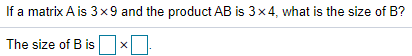 Solved If a matrix A is 3x9 and the product AB is 3 x 4, | Chegg.com