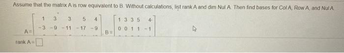 Solved If a 3x9 matrix A has rank 3, find dim Nul A, dim Row | Chegg.com