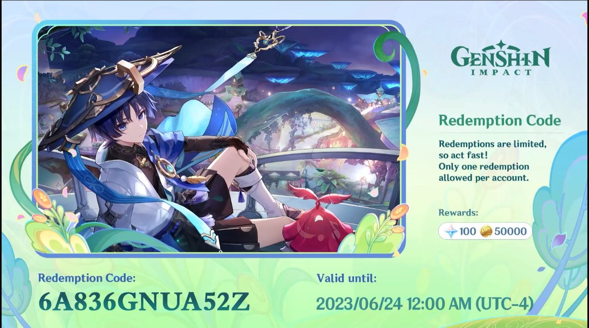 Genshin Update on Twitter: "3rd code 6A836GNUA52Z"