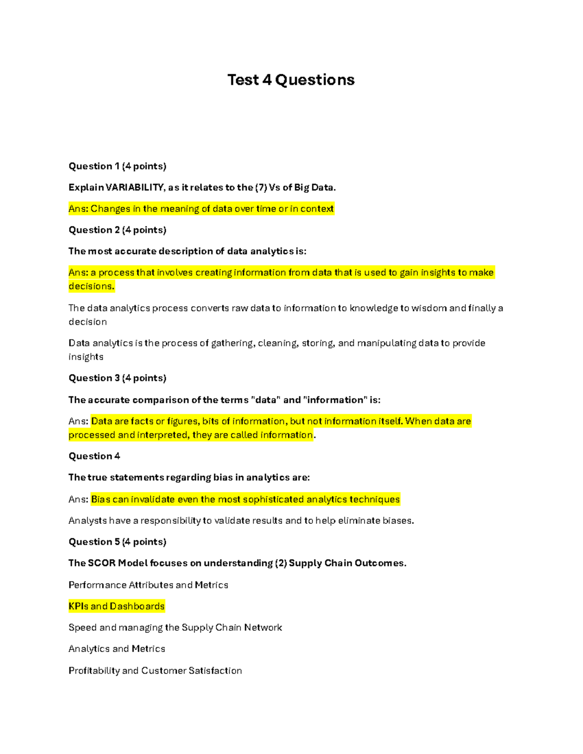 Test 4 Questions - Question and answer - Test 4 Questions Question 1 (4 ...