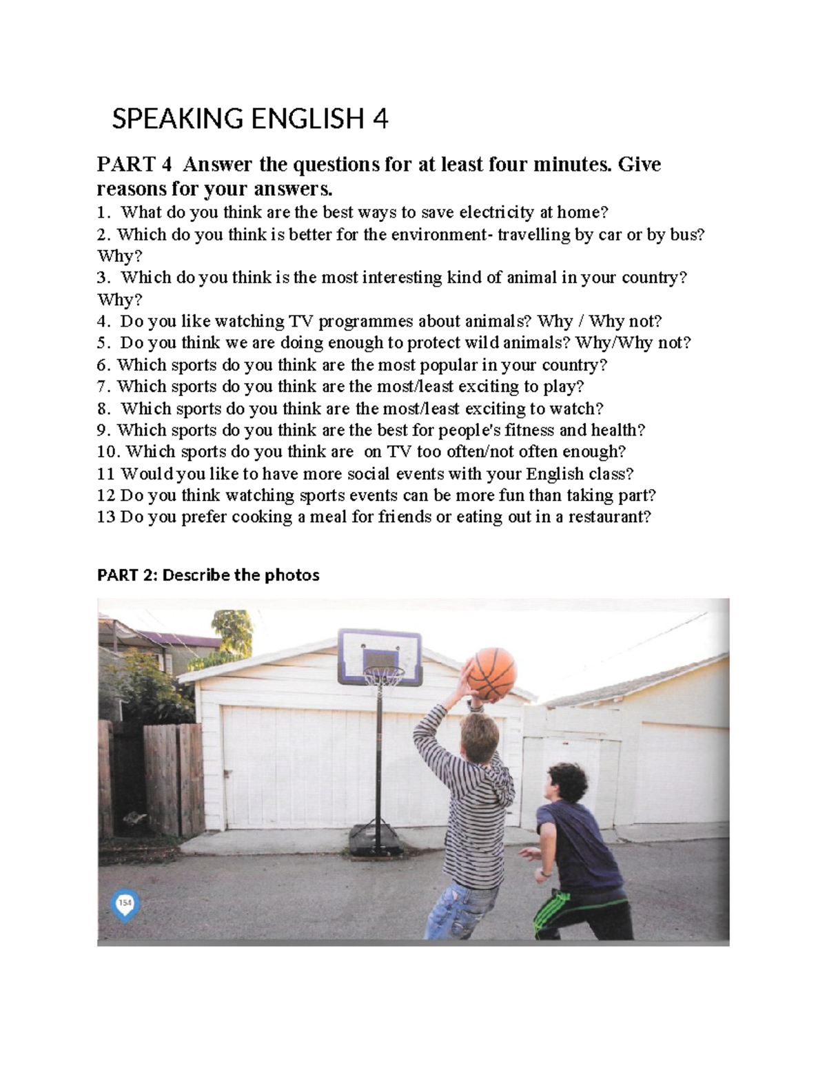 Speaking- English-4 - yes - SPEAKING ENGLISH 4 PART 4 Answer the ...