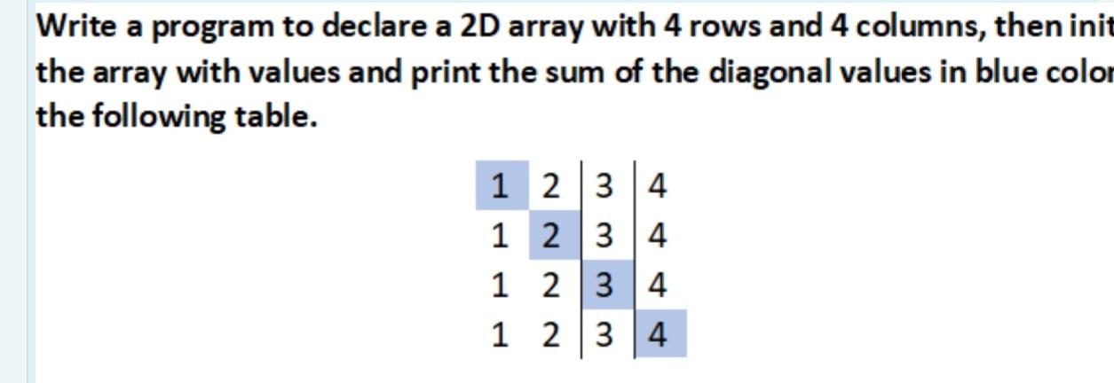 Solved Write a program to declare a 2D array with 4 rows and | Chegg.com