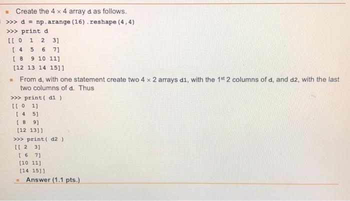 Solved Create the 4 x 4 array d as follows. >>> d = | Chegg.com
