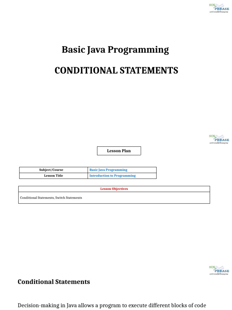 L7 Conditional Statements in Java | PDF | Computer Programming ...