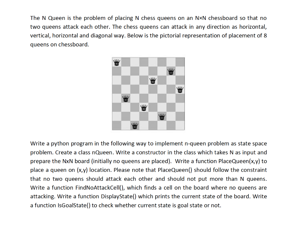 Solved Write a python program that solves N queens problem | Chegg.com