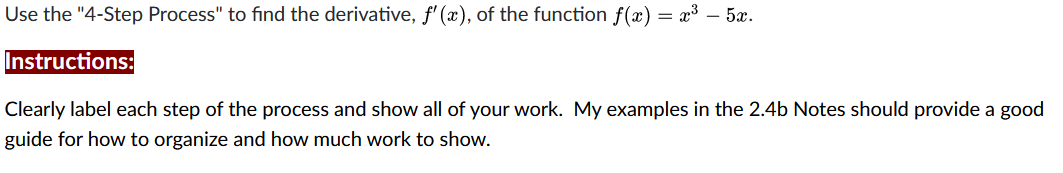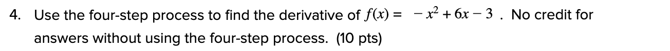 Solved Find the derivative by using the 4-step process: 1.) | Chegg.com