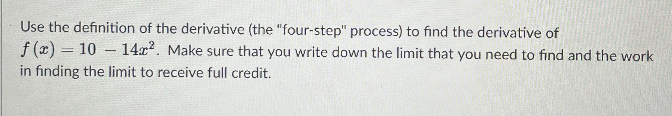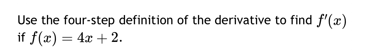 Solved Find the derivative using the four-step process. | Chegg.com