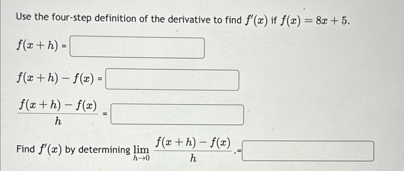Solved Use the definition of the derivative (four step | Chegg.com