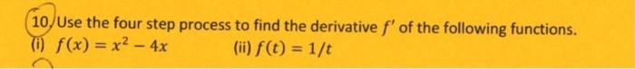 Solved 10. Use the four step process to find the derivative | Chegg.com