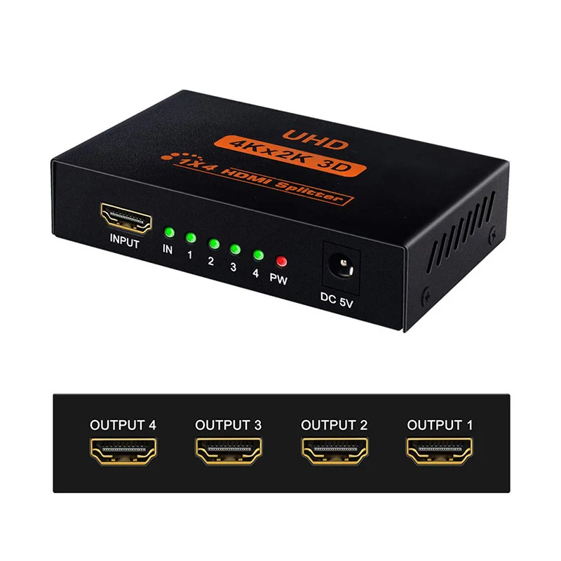 HDMI Splitter 1 in 4 Out -4K Hdmi Splitter 1x4 Ports v1.4 Powered 4K/2K ...