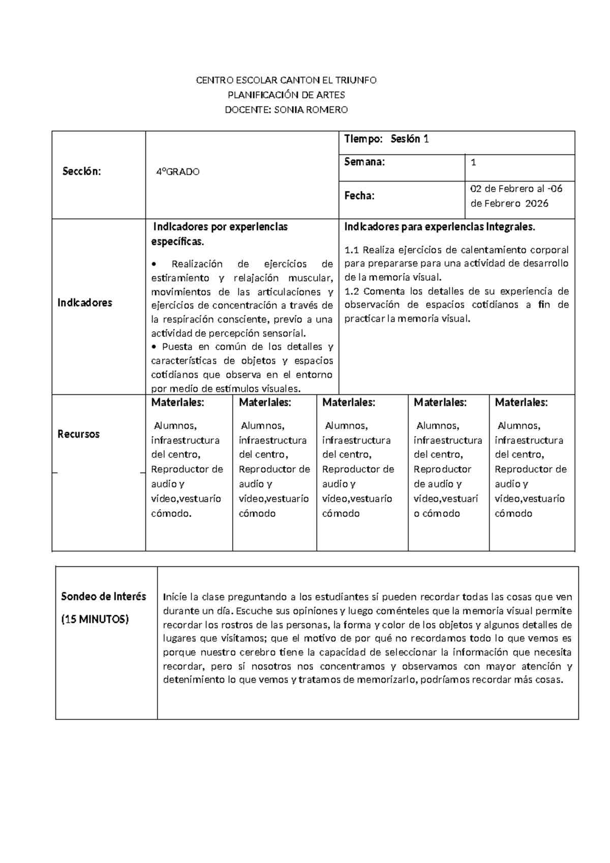 Planificación de Artes 4° Grado 2026: Sesiones y Actividades - Studocu